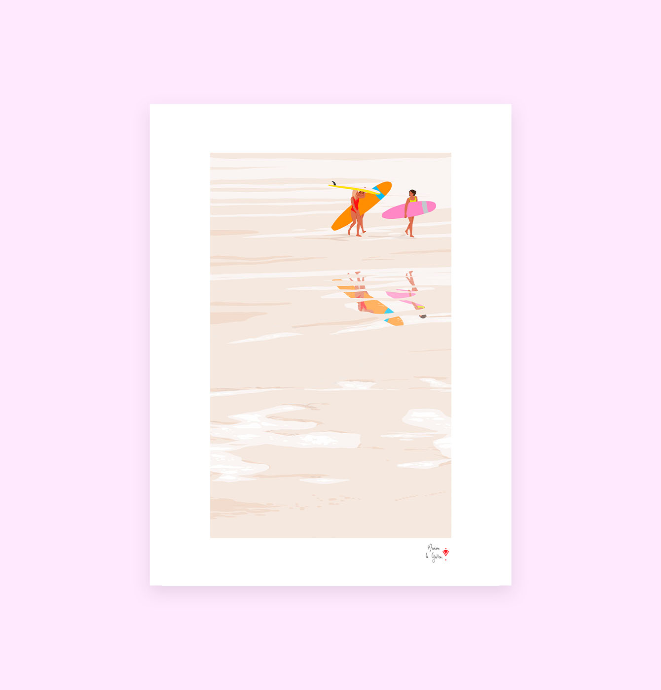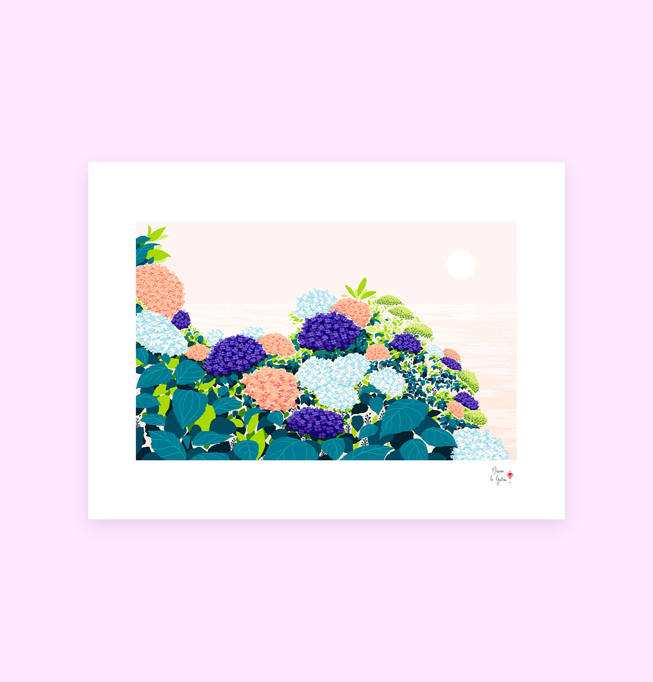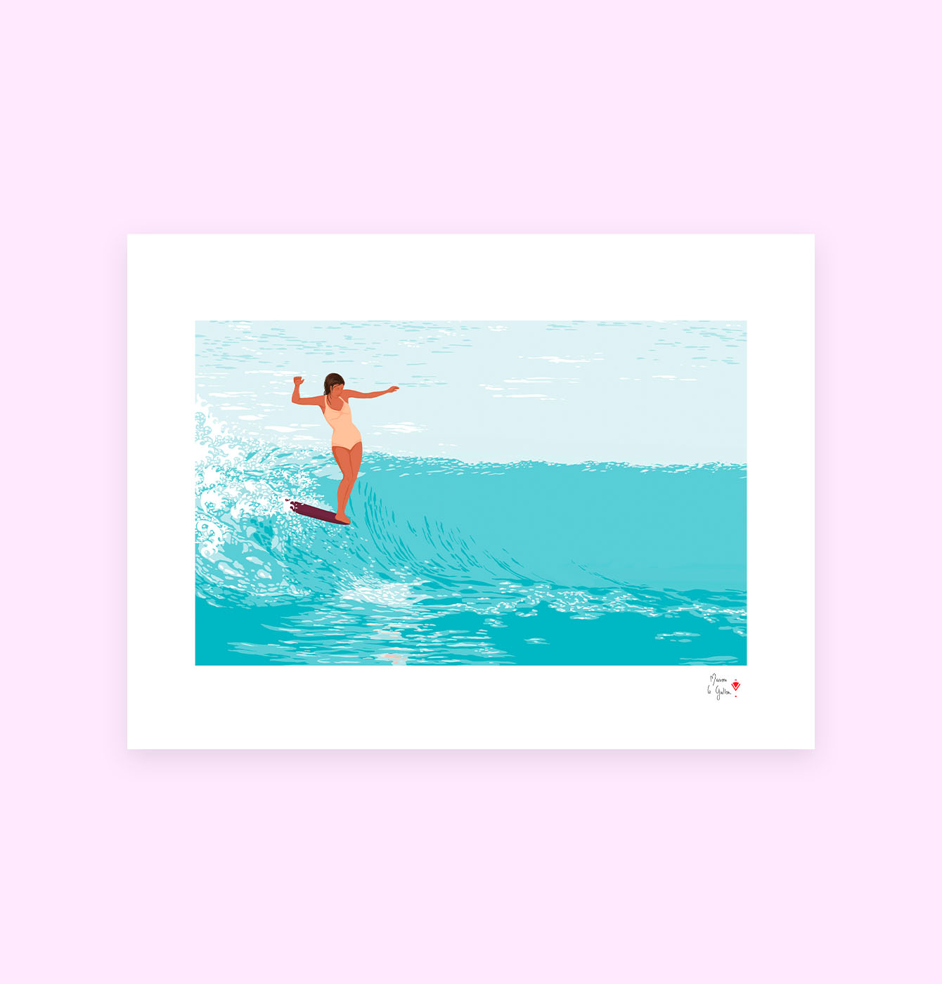 En 2021, j’ai collaboré avec les Galeries Lafayette de Biarritz pour concevoir une série d’illustrations sur mesure à la fois décoratives et éditoriales. Ce projet visait à valoriser l’image du magasin à travers une communication artistique forte, tout en proposant les œuvres à la vente au sein de l’espace boutique. Inspirée de l’esthétique de la côte basque, la série mêle formes douces, teintes naturelles et scènes de vie stylisées. Chaque illustration est pensée comme une évocation poétique de Biarritz : architecture, surf, élégance, lumière et nature. Les visuels ont été conçus en illustration digitale, avec une qualité professionnelle permettant une impression en grand format (vitrines) et en édition limitée pour la vente.