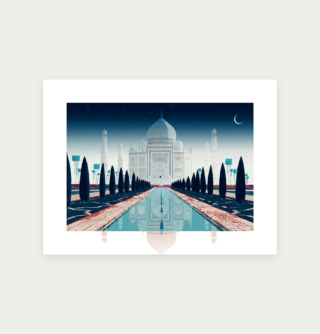 Cette illustration présente une interprétation artistique du Taj Mahal réalisée en digital painting. Cette technique numérique permet de capturer les détails architecturaux emblématiques du monument tout en offrant une approche personnelle de cette merveille du monde. L'œuvre explore les jeux de lumière sur le marbre blanc caractéristique du mausolée, ainsi que les proportions harmonieuses de sa structure. Le digital painting offre la possibilité de travailler les nuances colorées et les effets atmosphériques pour créer une vision contemporaine de ce chef-d'œuvre de l'architecture moghole. Cette création illustre les possibilités du digital painting dans la représentation de monuments historiques, alliant précision technique et expression artistique personnelle.
