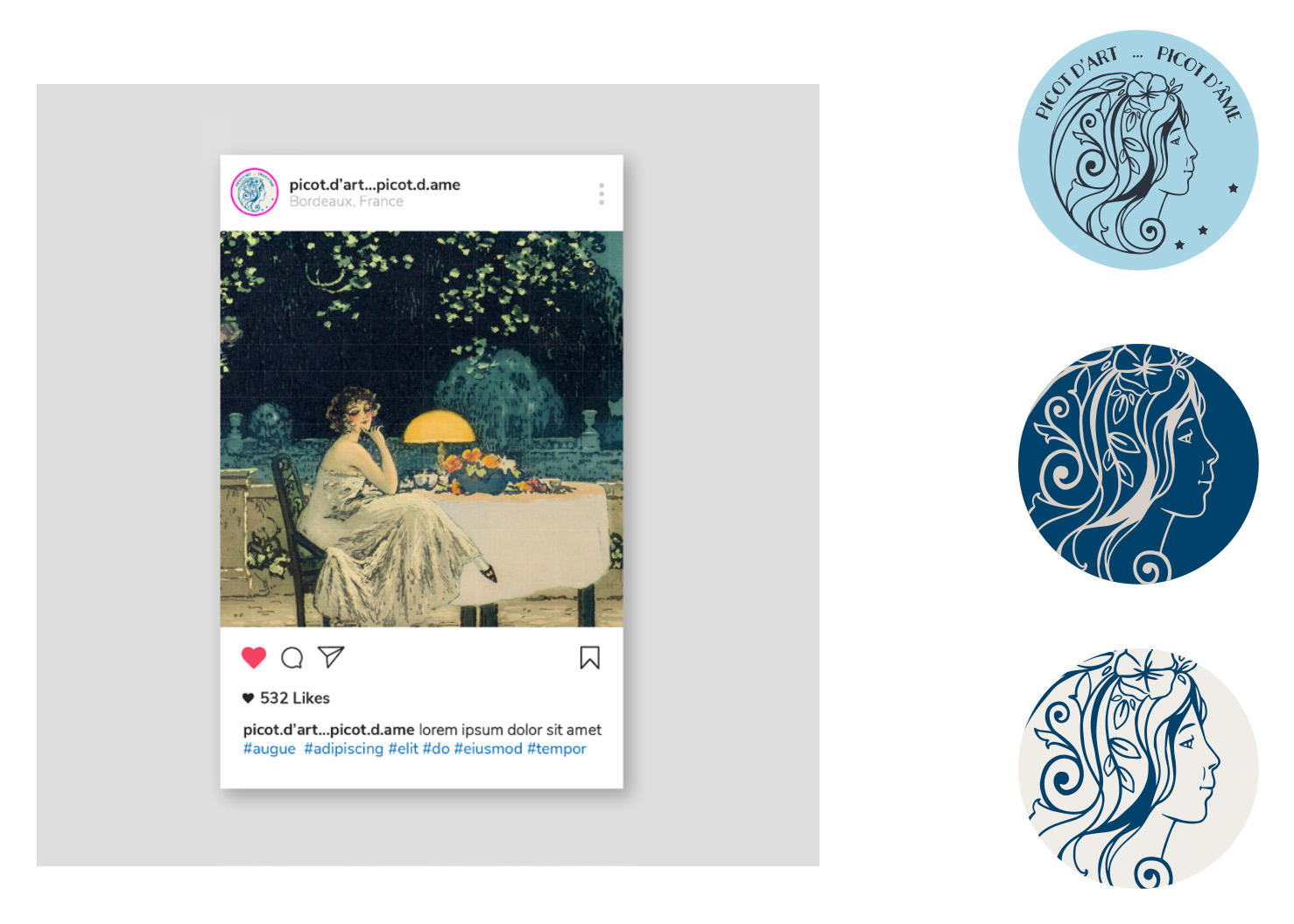 Picot d'Art ... Picot d'Âme est une marque girondine qui transforme des objets du quotidien en supports artistiques. Créée par deux sœurs passionnées, elle propose coussins, carrés de soie et papeterie ornés d'œuvres d'art, alliant artisanat français et engagement éco-responsable. J'ai développé une identité exprimant la dualité poétique de la marque : un logotype jouant sur les mots Art/Âme, une palette chromatique inspirée des tonalités artistiques classiques et un système graphique flexible. Du site e-commerce aux packagings, cette signature visuelle distinctive valorise l'élégance intemporelle de l'art tout en affirmant un positionnement unique qui invite chacun à explorer sa propre sensibilité artistique.