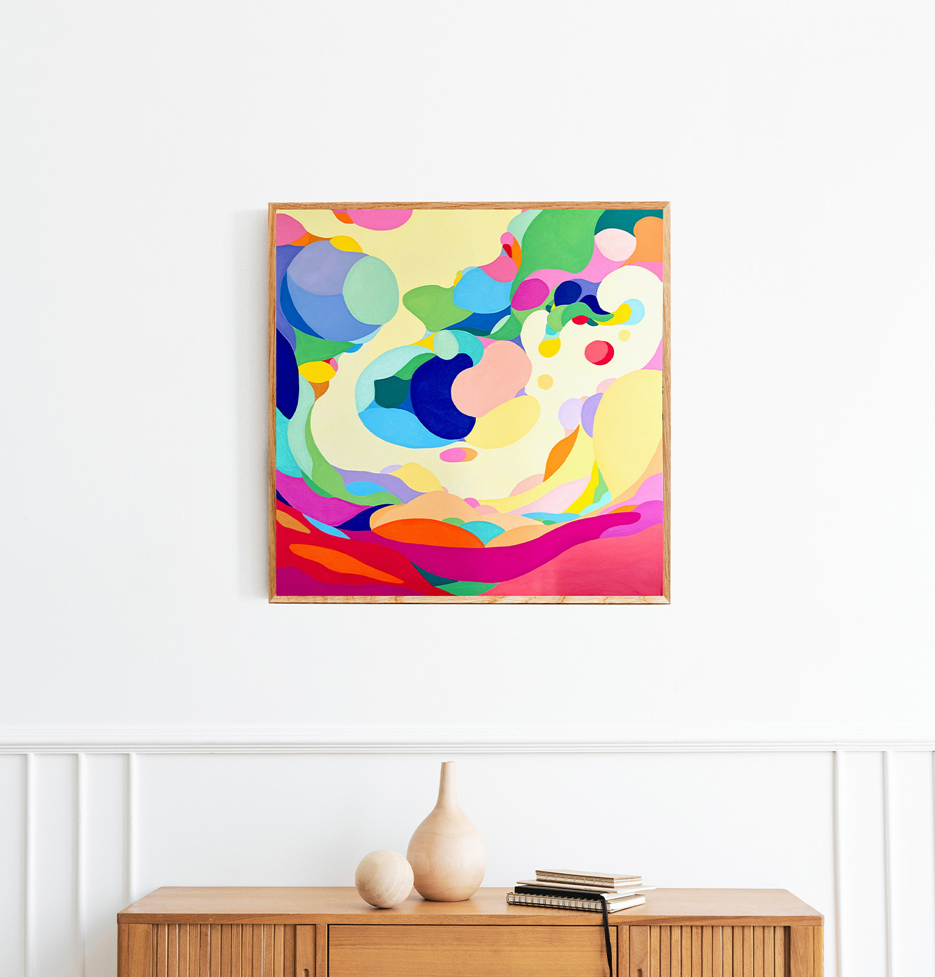 Le projet Molécules Élémentaires s’articule autour de la notion de flux – qu’il soit mental, organique ou émotionnel. La pratique picturale est centrée sur la dynamique des formes. À travers un vocabulaire plastique biomorphique, j'ai construis des compositions évoquant des formes vivantes, changeantes, qui semblent issues du monde cellulaire, aquatique ou mental. Ces formes sont pensées comme des entités autonomes, en expansion, en dialogue, en mutation constante.